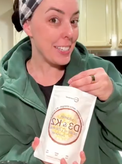 Ingiérela con un vaso de agua junto con una comida que contenga grasas saludables (como aguacate, aceite de oliva, nueces o coco). Las vitaminas D3 y K2 son liposolubles, por lo que se absorben mejor junto con grasa natural.